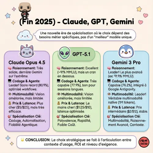 En novembre 2025, la question n’est plus “quel modèle est le meilleur ?”, mais “quel modèle répond à quel besoin ?” :
